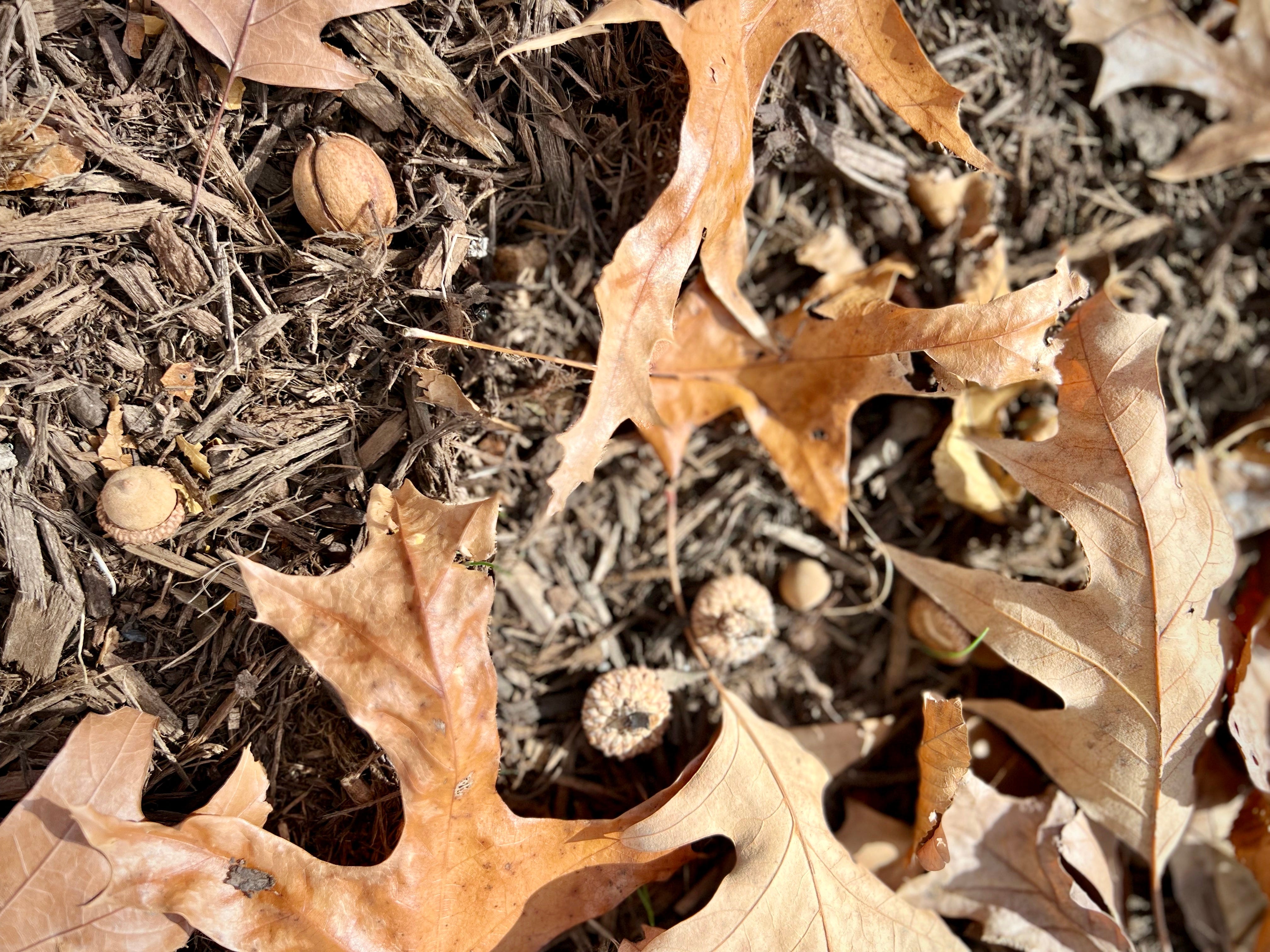 One mile in, the day was warmer than I realized, and we stopped under the shade of an oak tree on a sandstone bench. Once I deduced the local groundhog (who burrows under the oak tree) was nowhere nearby, I took me time and sat still, listening to the wind rustle the leaves and marveling at the foliage at my feet. I snapped a few images, collected several acorns of varying decomposition for my sketchbook, and then we continued walking.